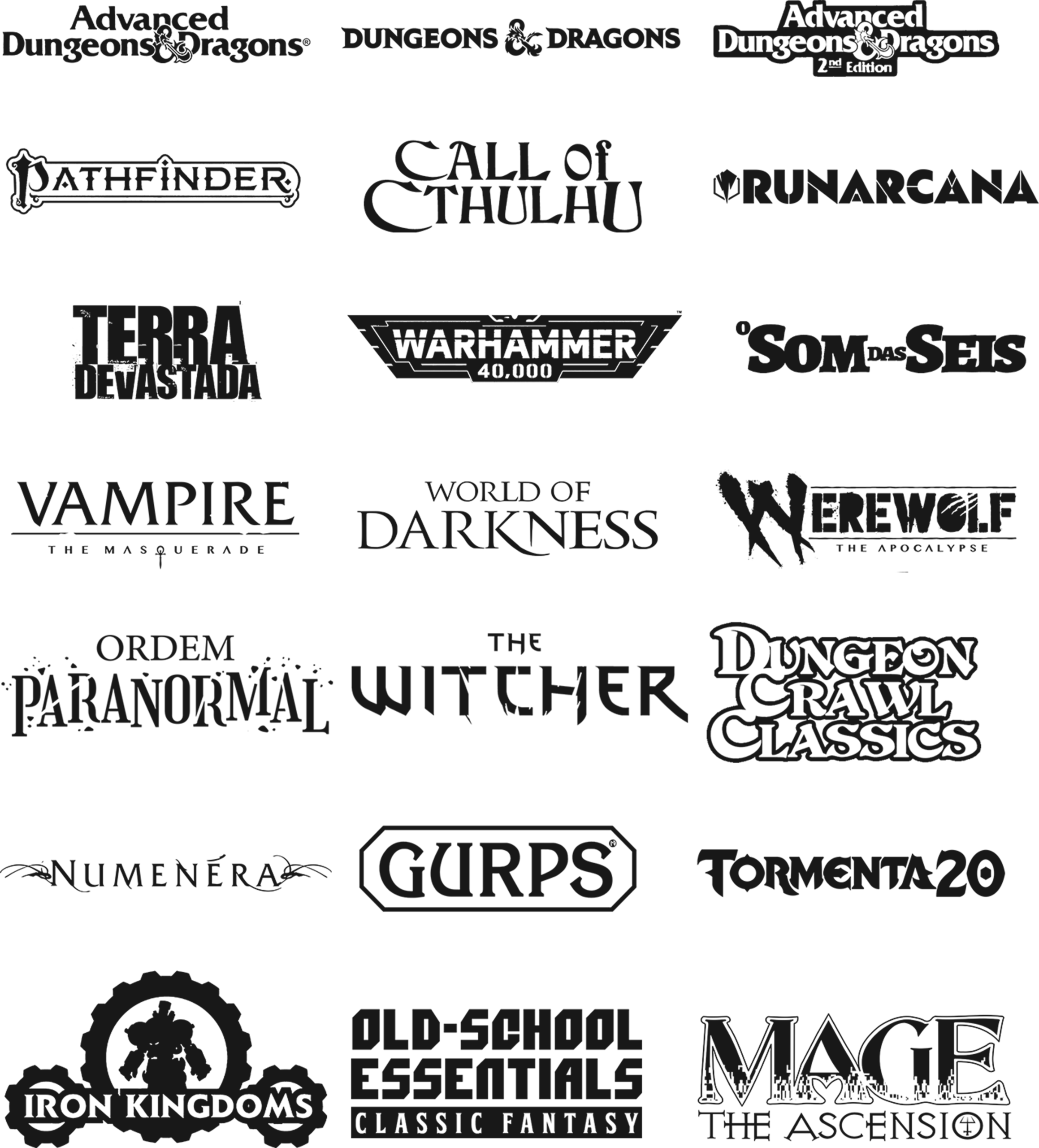 Jogue D&D, Vampiro, Pathfinder, Cyberpunk, Lancer e muitos outros mundos aguardam sua próxima ficha. Escolha seu sistema e desbrave novas aventuras.